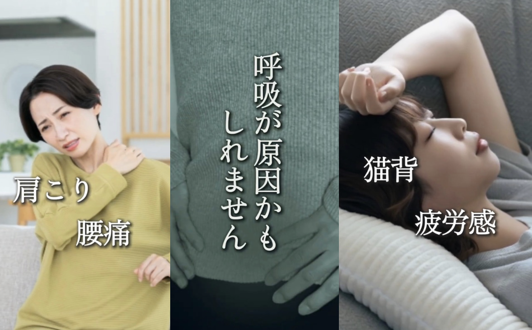 肩こり・腰痛・疲れやすさ・姿勢不良は呼吸が浅いことが原因かもしれません。